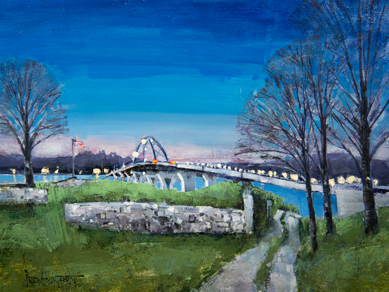 Hi Peter. Another great painiing. You hit many happy memories; Tina and I spent many warm Sundays anchored at the Champlain Bridge (old and new) enjoying lunch, swimming and chatting with friends. It is also the “gateway” when traveling north on the lake to the “Big Water.”