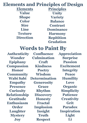 Early in my career I drafted a list of words that describe some of the things I like to express in my art. When considering a new subject I often choose one (or several) to firmly anchor my intentions and help keep me on track. They are an enticing menu of possible motives. My “words to paint by”, along with the elements and principles of design, help establish a solid conceptual foundation on which to build a strong composition and an articulate visual statement.